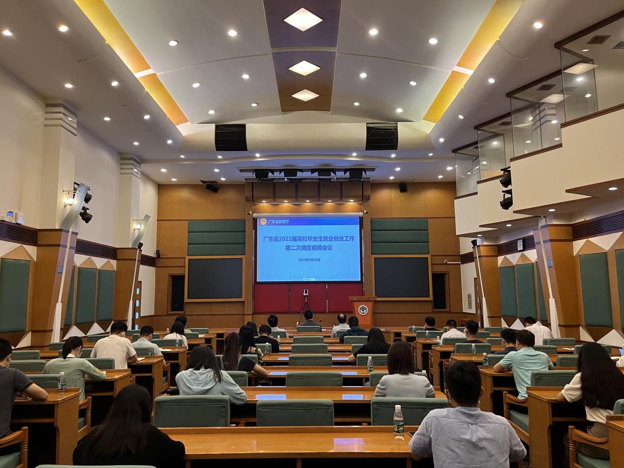 4月28日下午,广东省教育厅组织召开广东省2022届普通高校毕业生就业创业工作第二次视频调度会议,伟德bv国际体育在北校区国际会议厅设立分会场。校党委副书记唐锐,党委学生工作部、研究生工作部负责人,全体毕业班辅导员和学生就业指导中心全体工作人员参加会议。