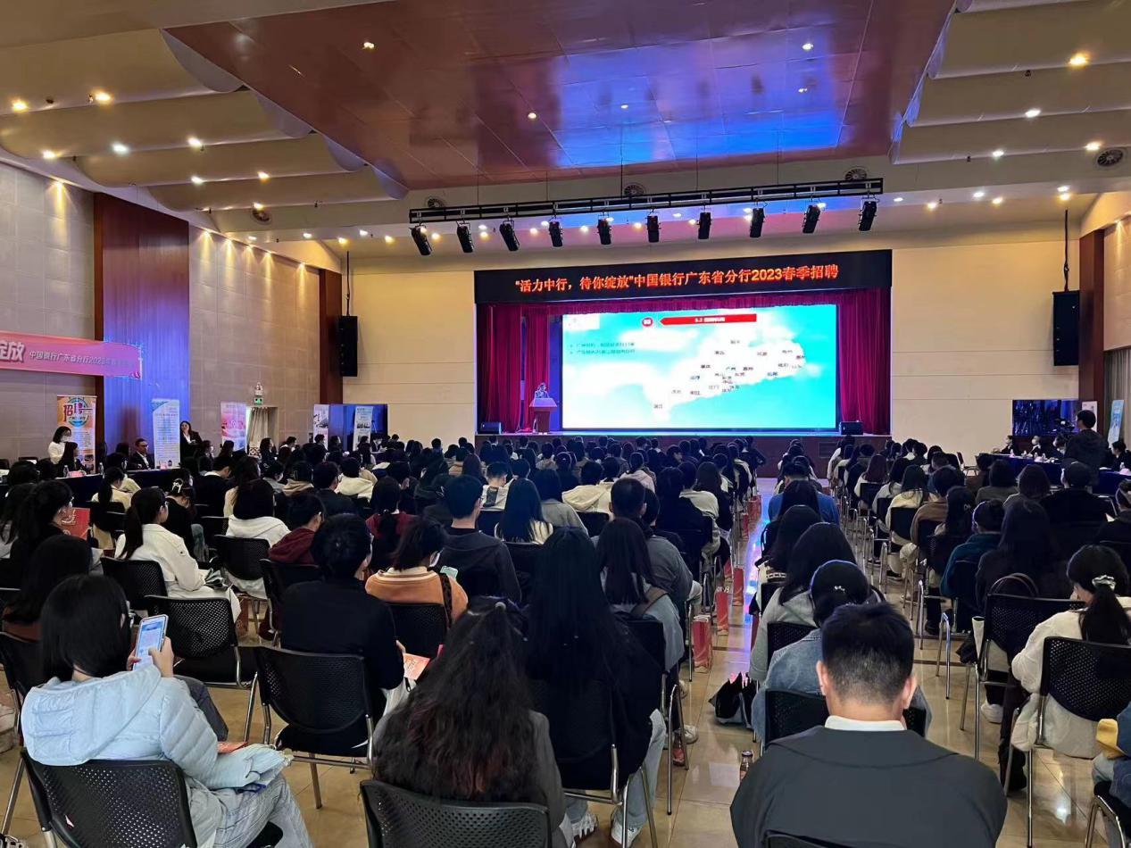 招聘会伊始,中国银行广东省分行招聘负责人李燕南分别从招聘岗位、培训体系、晋升通道、福利保障及春招安排等方面为同学们作了详细介绍。她表示广外是中国银行广东省分行春季招聘的首站,中国银行广东省分行有不少广外的优秀校友。中国银行广东省分行始终视人才培养为百年不易之准则,打造“以员工为本、以奋斗者为本、以基层和基础为本”的人本文化,历来重视加强员工队伍的培养和建设,希望以后有更多的同学加入中国银行广东省分行。同时,她勉励同学们在毕业季求职期保持良好心态,发挥个人独特优势,抢抓春招关键时机,在职场新天地成就出彩广外人。