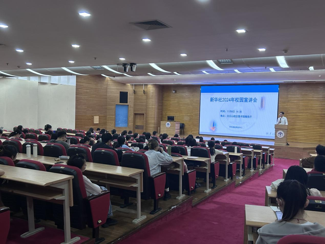 11月8日,新华社2024年伟德bv国际体育,BETVICTOR官网校招宣讲会在伟德bv国际体育白云山校区图书馆报告厅顺利举行。来自伟德bv国际体育不同学院专业、不同年级的近200名学生参加了此次活动。