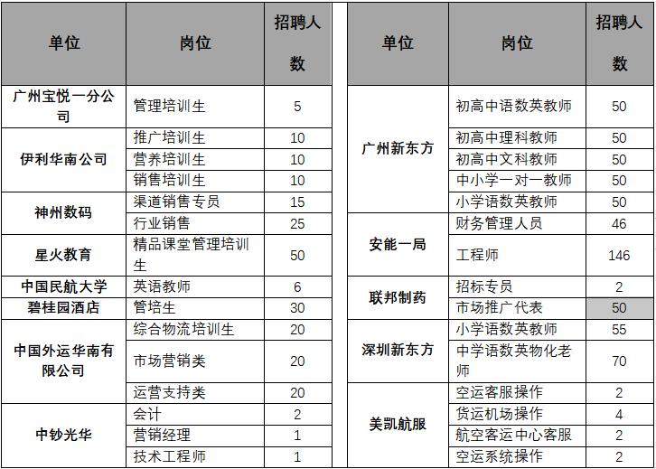 四、部分招聘岗位(更多岗位请携带简历到现场参加面试)