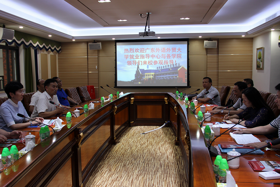 6月12日下午,伟德bv国际体育学生就业指导中心主任谢秀兰、副主任肖锋,英文学院副书记何伟儒、金融学院副书记赵观音、中文学院副书记李江、教育学院副书记徐昶斌、艺术学院副书记张莉、英文学院辅导员贾春成、金融学院辅导员薛达、中文学院辅导员杨韬、教育学院辅导员林泽龙、艺术学院辅导员邓煜等走访了广外附设佛山外国语学校(简称“广外佛山外校”)。广外佛山外校方建军校长、国信控股集团总裁梁鸣、佛山外校常务副校长曹旭飞和副校长张敏、聂德森等热情接待了伟德bv国际体育代表一行,双方举行了会谈。