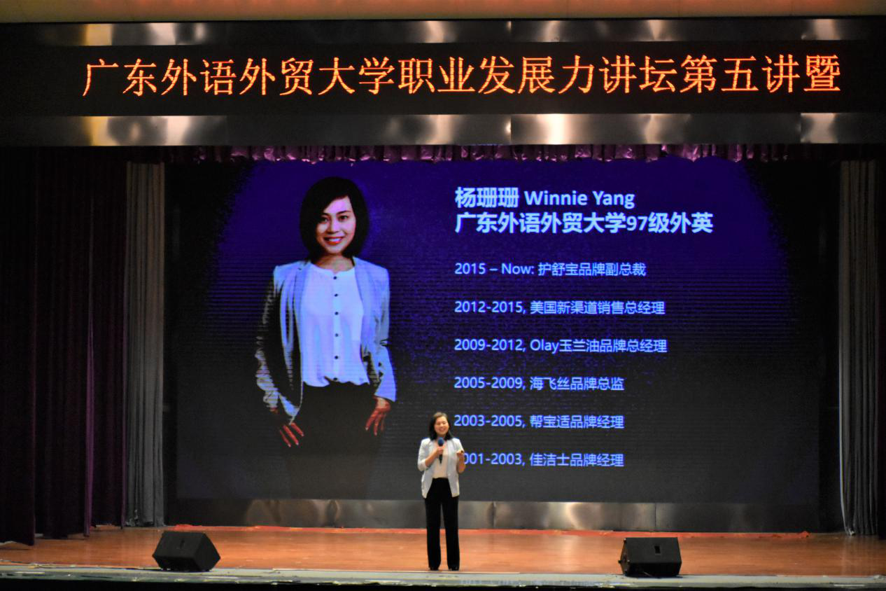 4月12日晚,伟德bv国际体育职业发展力讲坛第五讲暨宝洁大学公开课在南校区B8学术报告厅举行。宝洁大中华区女性护理品类副总裁杨姗姗作题为“电商新纪元”主题讲座,就电商发展趋势、老牌子如何融入电商以及如何赢在新零售三个方面进行分享。