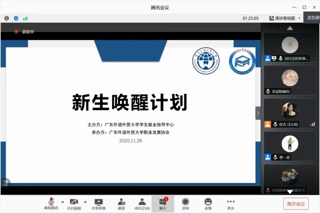为帮助新生唤醒职业生涯规划意识,树立正确的就业观,11月26日下午,针对2020级学生的“新生唤醒计划”通过腾讯会议成功举办,250余人参加活动。