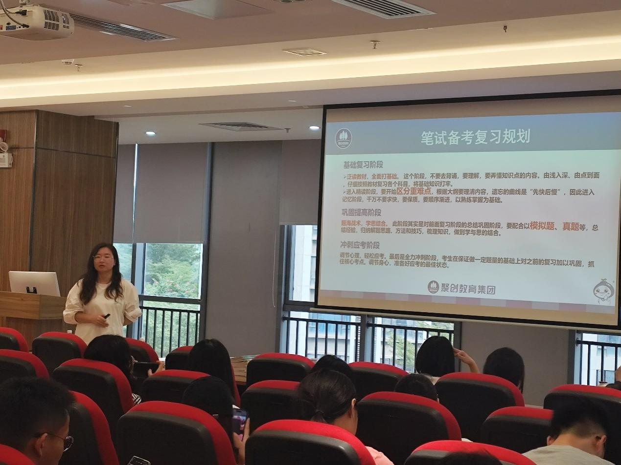 2023年11月9日下午,由学生就业创业中心主办,高级翻译学院承办的研究生职业发展与竞争力工作坊之教招及公考备考指导讲座在知识城校区海丝知识中心进德楼B1栋305顺利举行。本次讲座邀请了聚创教育集团资深教育专家何夕老师为知识城校区全体研究生提供了全方位的指导。