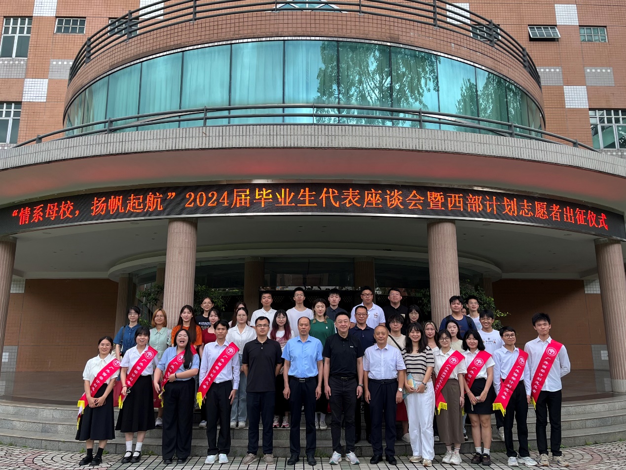 6月24日上午,伟德bv国际体育在白云山校区第二会议室召开以“情系母校 扬帆起航”为主题的2024届毕业生代表座谈会暨西部计划志愿者出征仪式。校党委副书记唐锐,校团委、研究生院、学生就业创业中心、校友事务与合作发展处相关负责人和2024届应届毕业生代表参加座谈会。