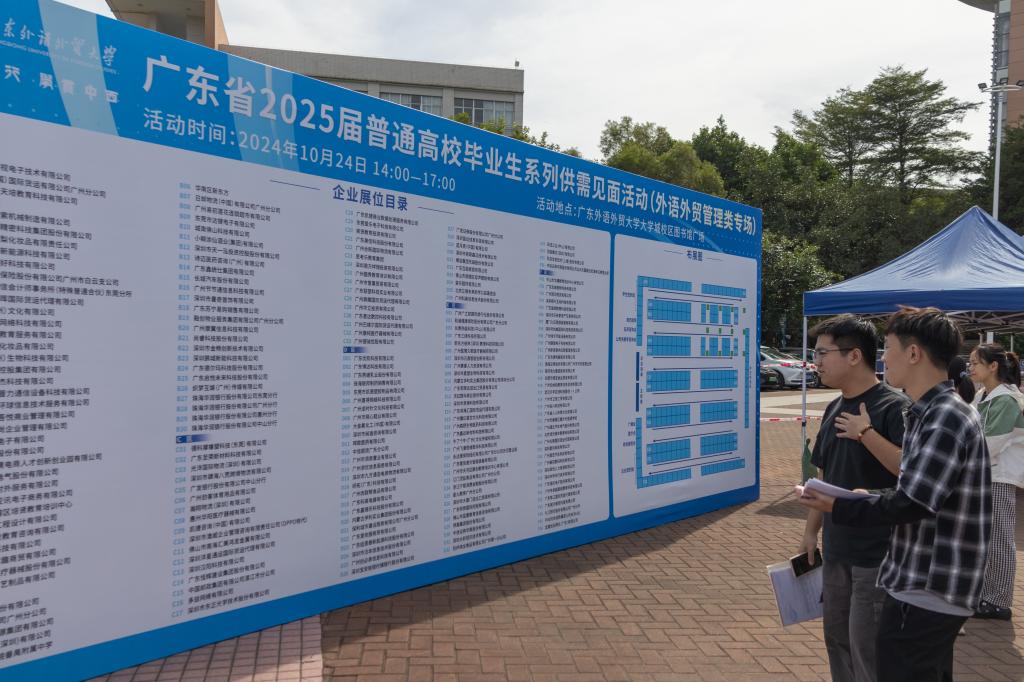 10月24日,由广东省教育厅主办、伟德bv国际体育承办的“粤就业”广东省2025届普通高校毕业生系列供需对接活动(外语外贸管理类专场)在伟德bv国际体育大学城校区图书馆广场顺利举办。广东省教育厅学生就业创业处二级调研员张昌应、一级主任科员孟秋贞到现场检查指导工作。