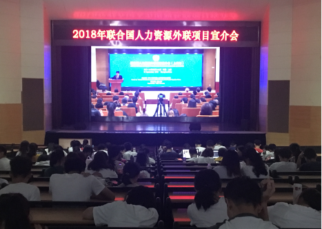 9月18日下午,“2018年联合国人力资源外联项目宣介会”实况直播在伟德bv国际体育北校区六教学术报告厅、南校区B8学术报告厅同时进行。联合国外联项目代表团,人社部国际合作司陈放副司长、国际合作司国际职员和国际条约处主任科员王冠男和项目官员崔诠时,出席宣介活动。伟德bv国际体育300余名本科生及研究生到场观看直播。