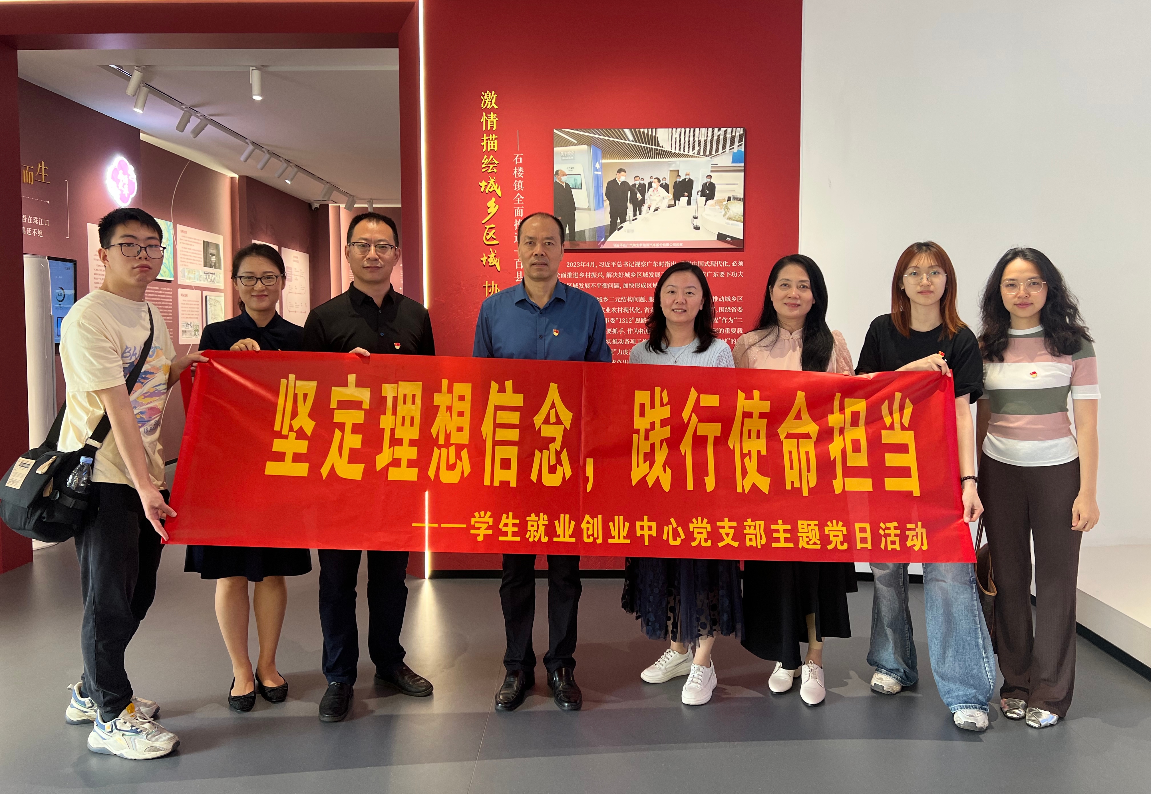 在开展深入贯彻中央八项规定精神学习教育之际,4月28日,学生就业创业党支部赴番禺区石楼镇开展“坚定理想信念,践行使命担当”主题党日活动。石楼镇党委副书记、镇长刘达成,镇党委委员陈家敬,组织人事办主任郑力厮,党群服务中心主任、东星村第一书记杨志增,东星村党总支主要成员,以及就创党支部书记康为茂、支部全体党员、入党积极分子参加活动。